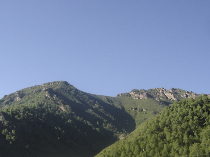 再往前走,便见两面山悬崖峭壁,直立若刀的。中间一条河流向下流去。欢跳而行,由于大黑沟山大沟深,阳光直到上午十一点左右,才从山顶的桦树林的缝隙中挣扎着钻出来。难怪留传着这样一首打油诗:“打黑沟,一溜天,二溜山,晒件衣服老不干”。整个大黑沟被天然密布的桦树林笼罩着。这里的护林人员都像一个个大黑沟的保护神,日夜守护大林间,使这里的一切生态得到了保护,草木茂盛,连绵不断。国家野生动物悠然自得,有雅繁衍生息。这里不时地会看到一两只鹿跃过山崖,几条悠闲自得盘廷在石头上。它们会毫无顾忌的从路人身旁走过现出与大自然和谐相处。