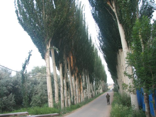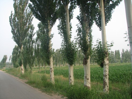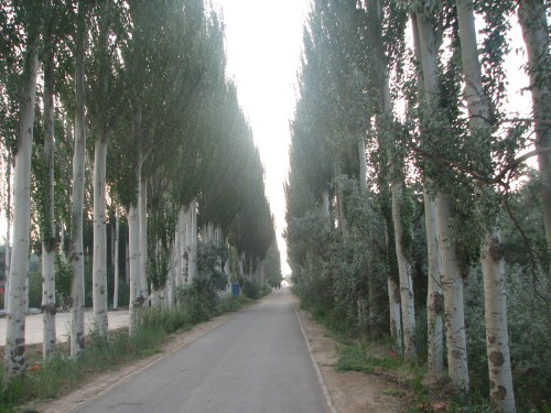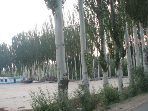走入西北,我相信给你印象最深的一定是那正直,挺拔的白杨树。笔直的干,笔直的枝,片片向上而有宽大的叶子,它的皮光滑而有银色的晕圈,并微微泛出淡青色。这种看似平凡但又“不平凡”的树实为稀有。但“稀有”的它很少被人重视,我不知这是为什么?