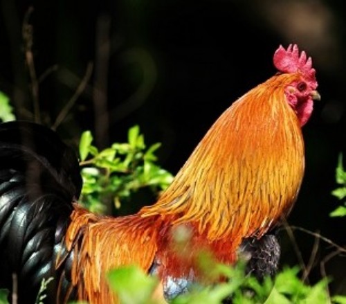 院子里,鸡、鸭、鹅全身好像都披上了金色的衣裳。你看,那只大公鸡跳上了墙头,好像“金黄帝”一样,面对夕阳,昂首挺胸的唱起了欢送歌:‘‘喔喔喔,一天的日子要过去,我送太阳公公回家去!”