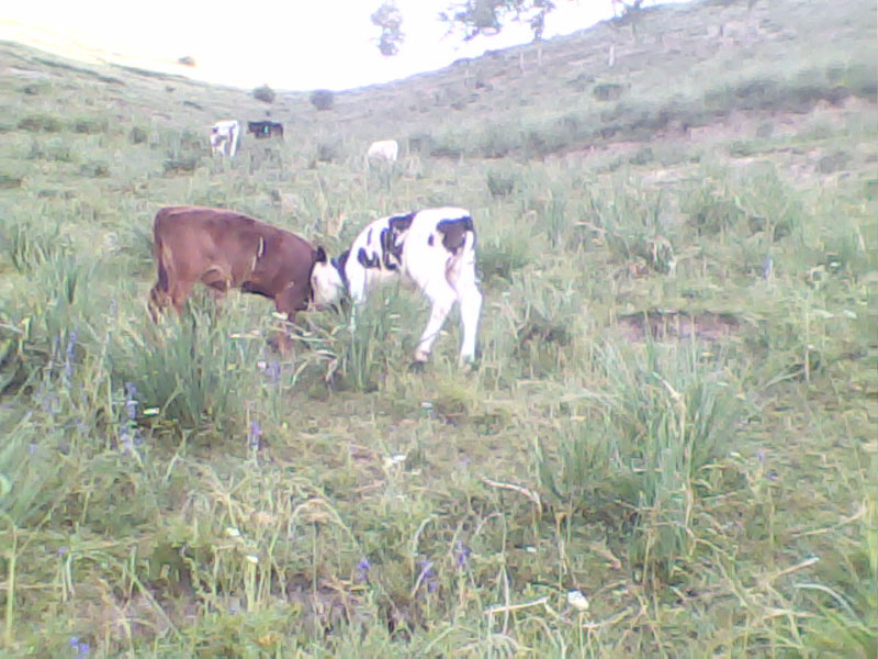 小牛吃奶的时候,只见用头使劲的冲着母牛吃奶,但是母牛一点感觉都没有,直至小牛吃饱为止。母牛还是一动不动站着, 还以为小牛还会再吃呢,所以才站着不动。