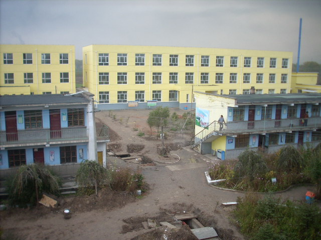 教学楼的西面是老师们的办公楼,每天,我们敬爱的老师都在里为同学们批发作业,备课,教学楼的后面是教师宿舍和学生宿舍,大家都会在那里休息。前面的操场中,有男生挺拔的身姿,女生柔美的曲线,大家都是那里玩耍,欢快而又充实。
