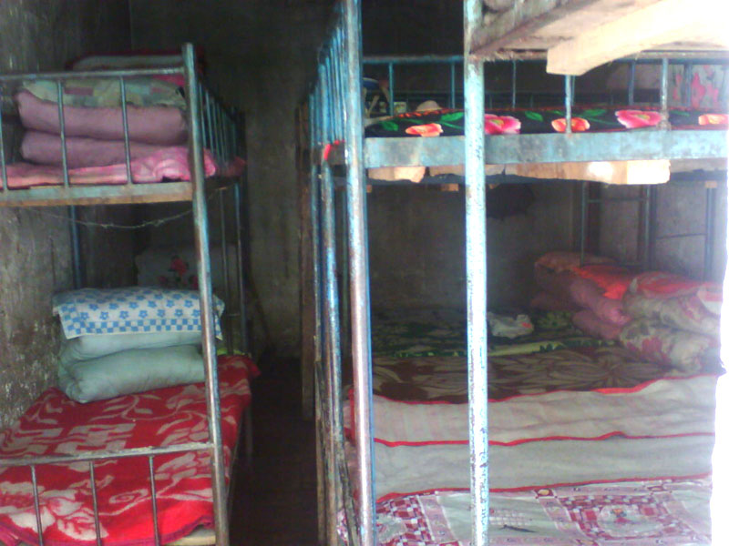 最后说说我们的“糊涂虫”,他这糊涂虫总在离晨跑5至6分钟起床,被子一下卷成个卷后,闹钟、破袜子之类的往里面一填,真不知道他晚上是怎么睡的。