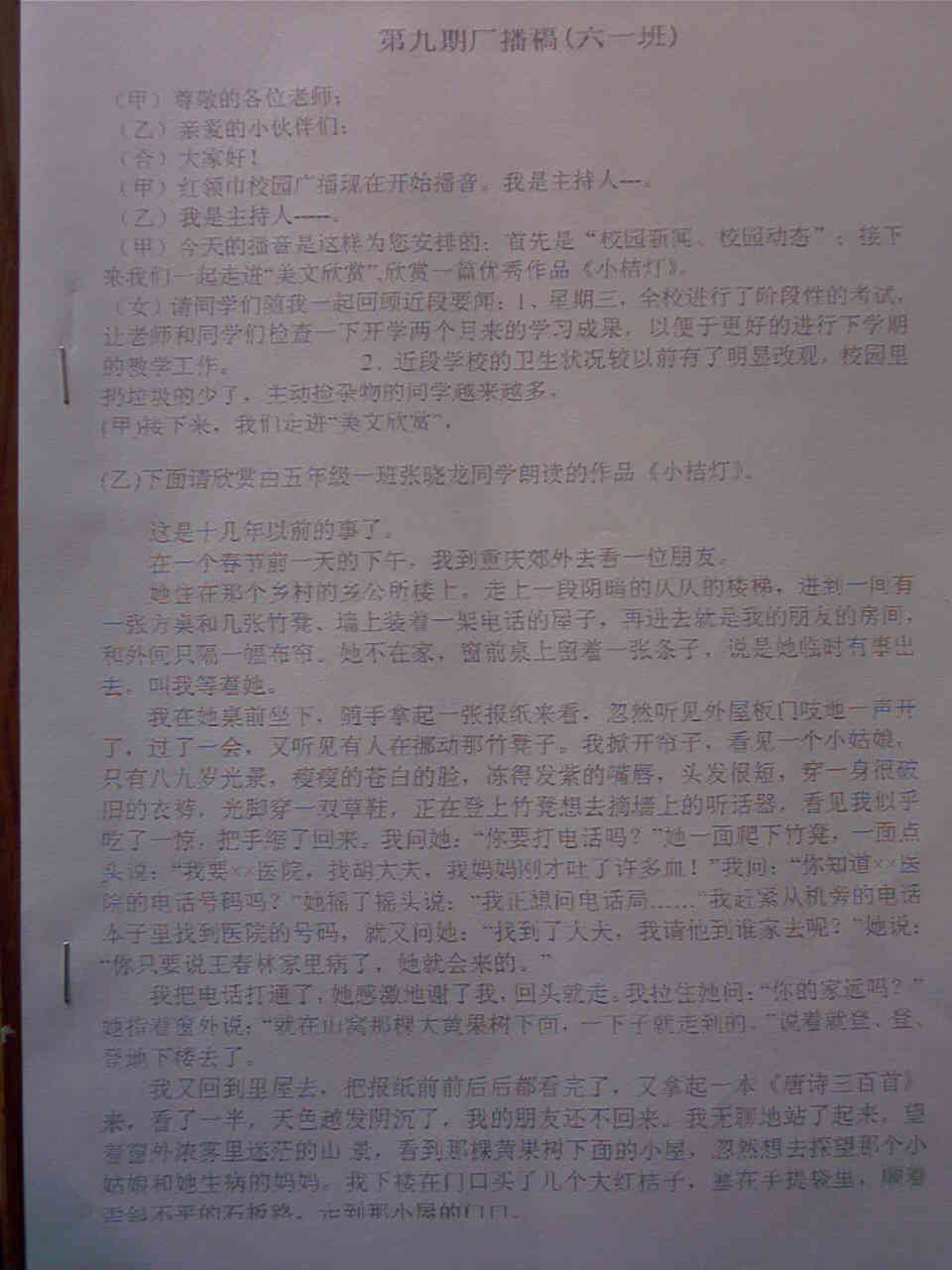 一整天,我都在熟悉广播稿,就连课间十分钟,我都没有像往常一样出去玩。我一定要好好表现一次!