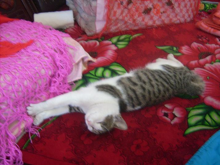 它太懒了,整天只知道睡觉。你看,它多胖,我不知道它是怎样有这样肥胖的身体的,因为自从它来我家,我就没见过它捉老鼠。然而就在这只猫的背后竟有着一个悲怆的故事。