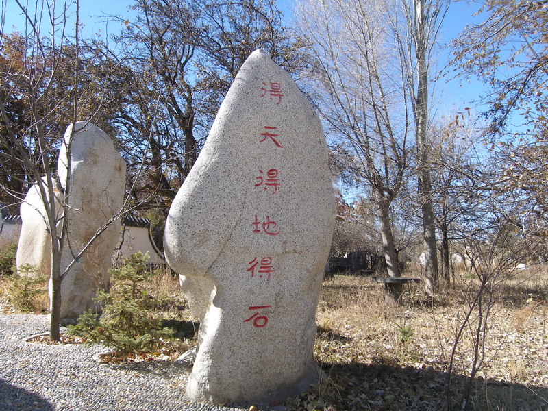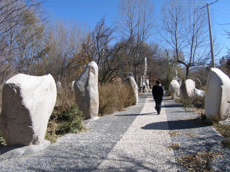 这些石头亭亭玉立、昂首挺胸。奇石旁边有榆树、白杨树、柳树等一些树木。