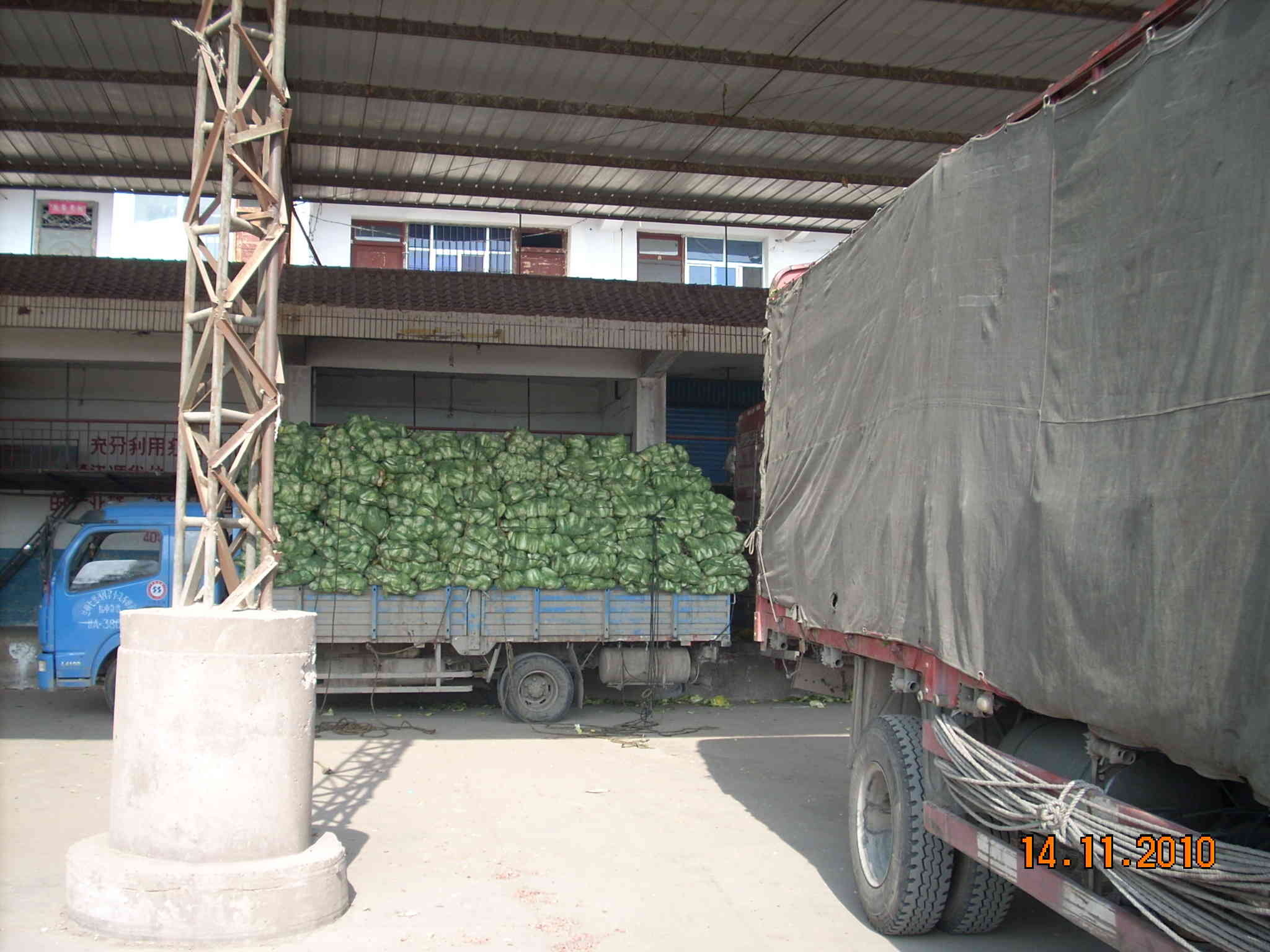 送入保鲜库的菜,通过大卡车把它运送到全国各地,满足全国人民的需要。