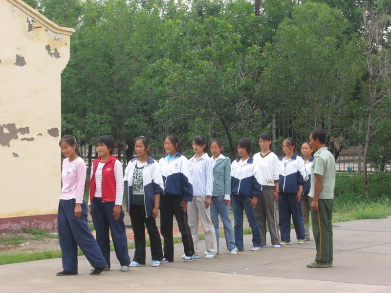 只见女生们站姿优美,而我们也不会示弱,昂首挺胸,表情严肃。大约半小时过去了,同学们在烈日的"照耀"下,汗水不断的从脸上滑落,但同学们还是坚持着,哪一方都不愿认输。