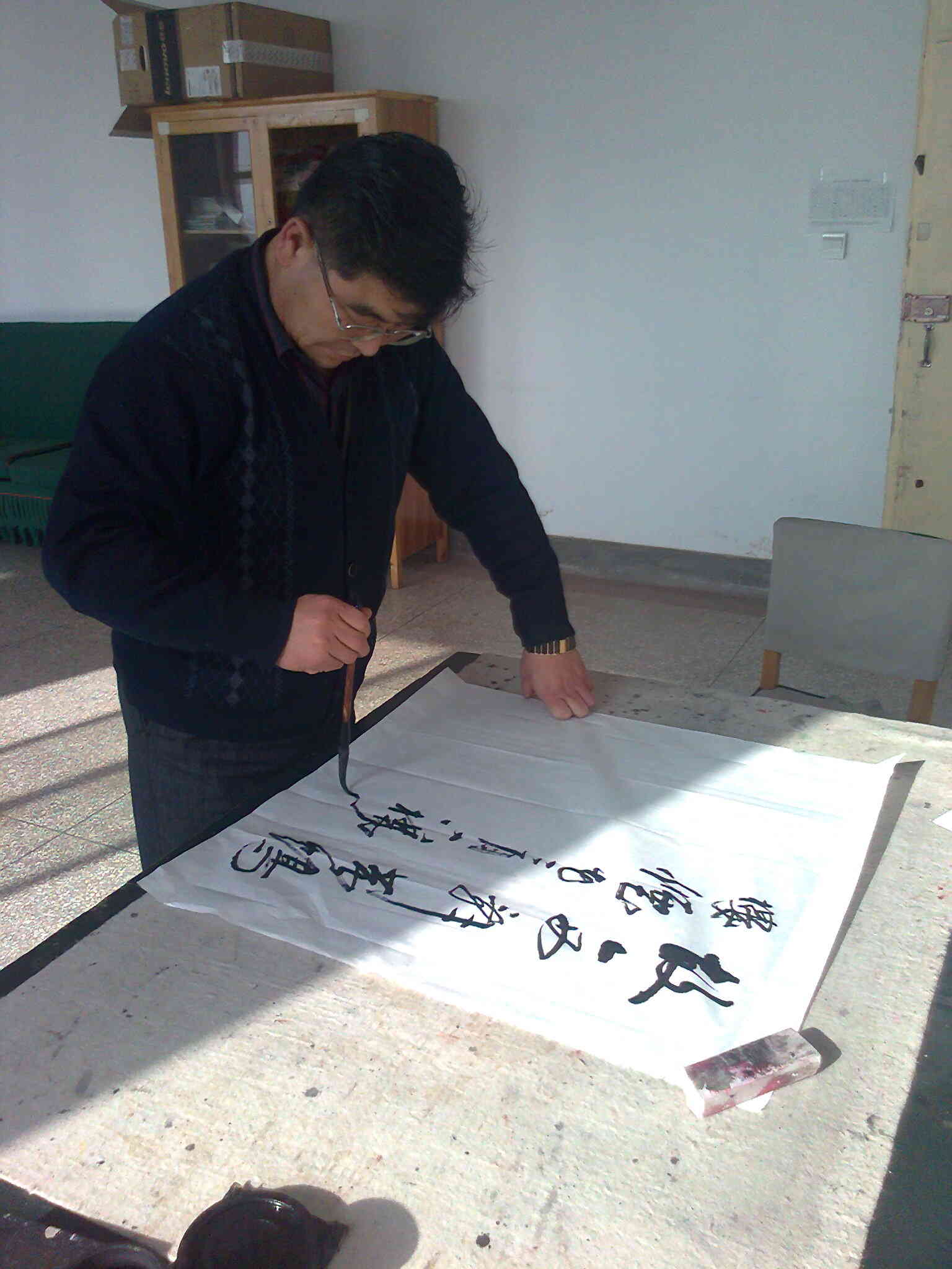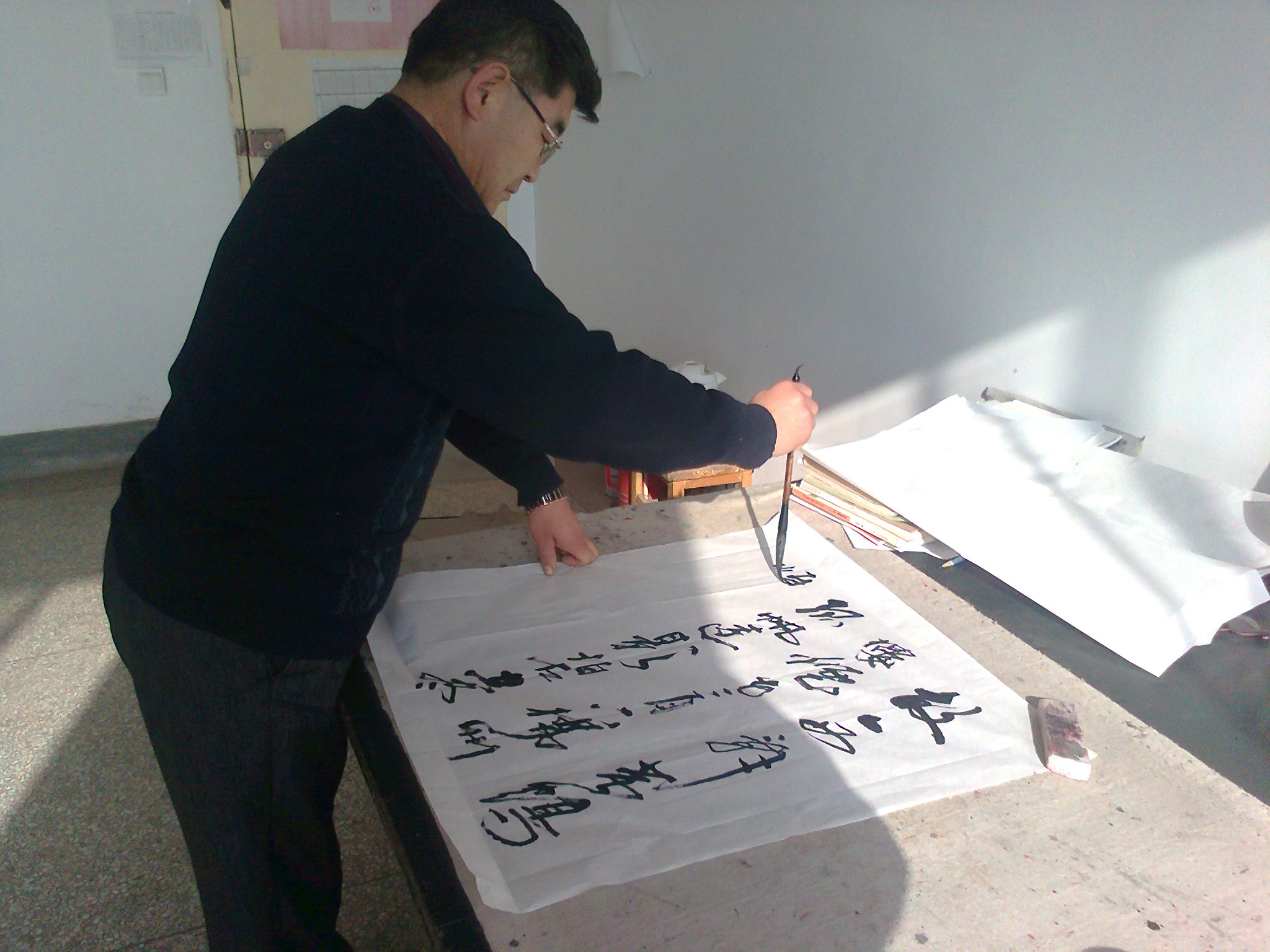 历史老师是一个热心的人,比如说学校里哪个老师要结婚了,他都会送上一副自己写的字,这件礼物可是很珍贵的哟,不是一般人都能得到的。很多慕名而来的人,也会向历史老师讨要他的墨宝,历史老师总是会满足他们的愿望。