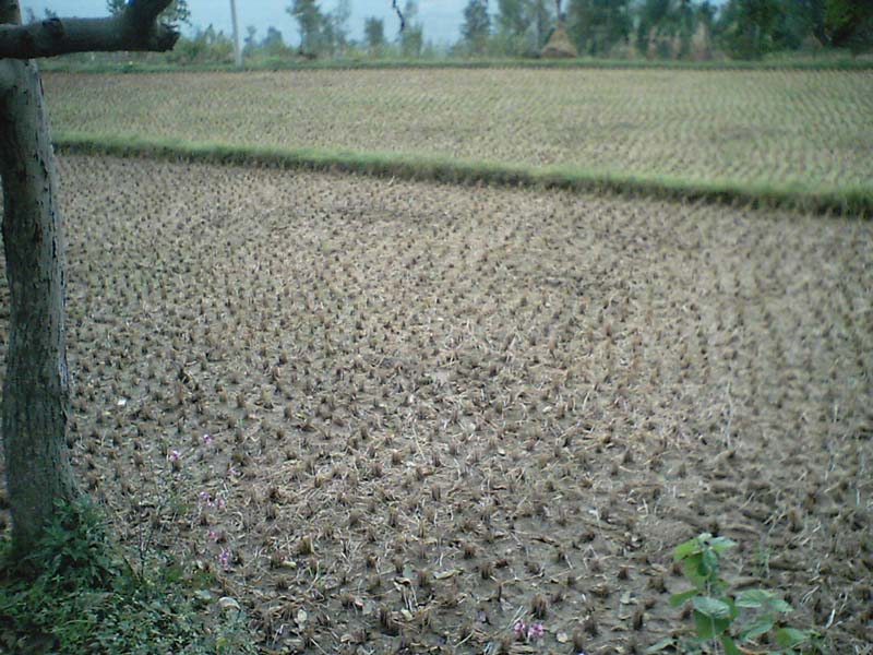 在谷子割完以后就留下象这样的谷板田, 也就是需要翻松的田。