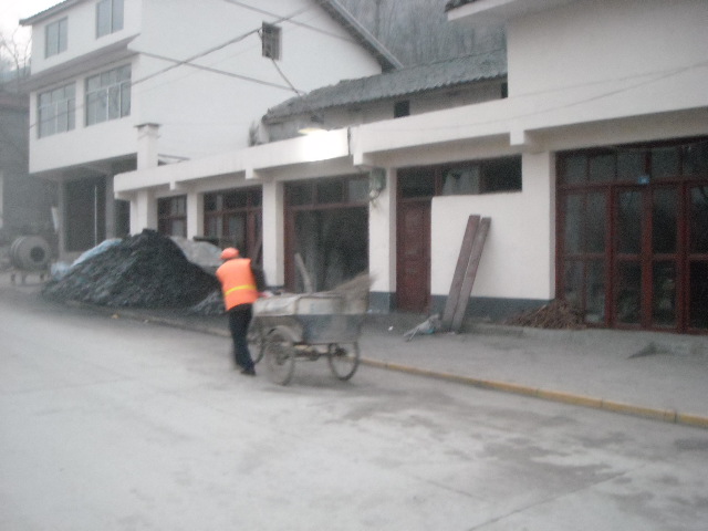 我从他的旁边走过,看得出来,他大约是一个40多岁的人,他戴着一个很陈旧口罩,虽然他把它洗得很干净,可是仿佛用手指轻轻一弹,就会飘出灰尘来。口罩遮住了他大部分的脸 ,但额头以及眼角那厚厚深深的皱纹却遮不住,细密的汗珠牢牢的挂在额头上。有时候,遇上雾大,就能看见他头上橘黄色帽子边少量蓬松的头发丝上艰难的挑着晶莹的雾珠,随着他扫出的节奏,一闪一闪便划落了,滴下来,沉重的打在地上溅起飞扬的灰尘。