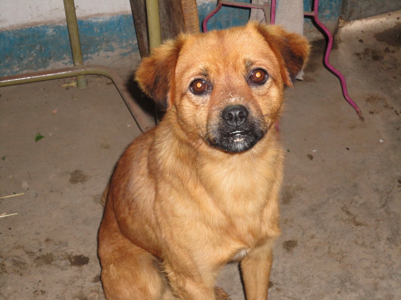 我家有一条小狗,黄色的毛,尾巴上有一块儿“记”,黑黑的,很好看。它长得虎头虎脑 的,所以我们给它起名为“虎虎”。