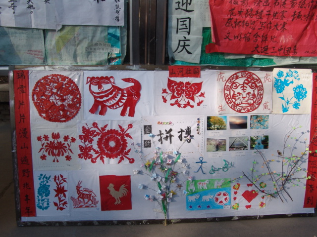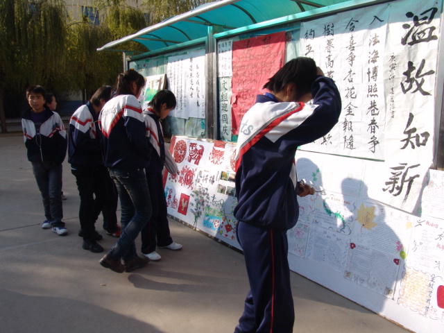 在这几天里,学校展出了每位同学的艺术作品,有素描、卡通、剪纸,还有许多作文等等。素描一般是高二和高三年级学素描的同学画的,那素描栩栩如生,好像真人一样,卡通也不错,很搞笑也很可爱,剪纸更不用说,同学们剪的动物好像是刻上去的。还有同学们写的作文大多都是歌颂祖国和家乡为主的。