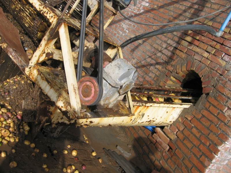 到了2005年秋季,淀粉厂已经开工。这时乡亲们都把自己的洋芋往来运,新开的淀粉厂天天人车拥挤。不到半个月,洋芋已经堆满了淀粉厂。这时勤劳的工人首先把洋芋送进冲洗机,只见零散的洋芋在转动的圆筒里翻动,上面清洁的水哗啦啦地往下流,冲洗过后的洋芋又被送进一个铁皮做的水沟里。往下流淌的清水再把洋芋清洗一遍后,就把洋芋送到粉碎机。
