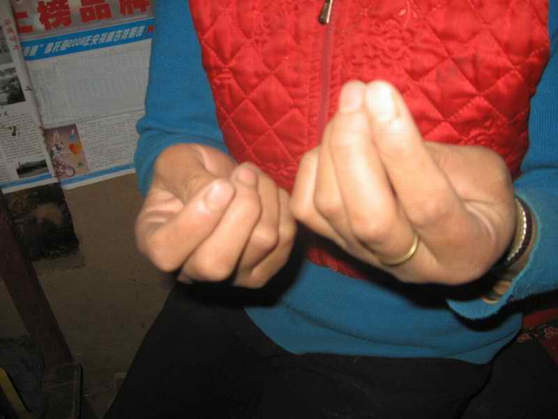突然听见母亲发出一声“唉呀!”,我看见母亲的手被针扎了一下,鲜血流了出来,母亲用另一只手指摁了一会儿,没包扎,只是又开始工作了。