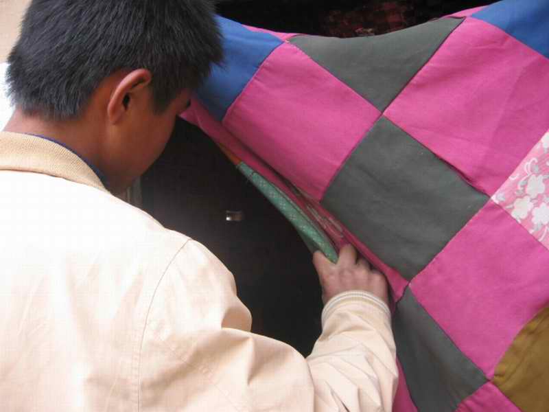 母亲有些疲倦。但母亲尽量忍住着,将那衣裳补完,这时,母亲显得十分苍老,额头上的皱纹更多了,眼光更暗了,我终于哭了出来,被母亲发现了,问我怎么了?我说外面的烟吹进了眼睛。