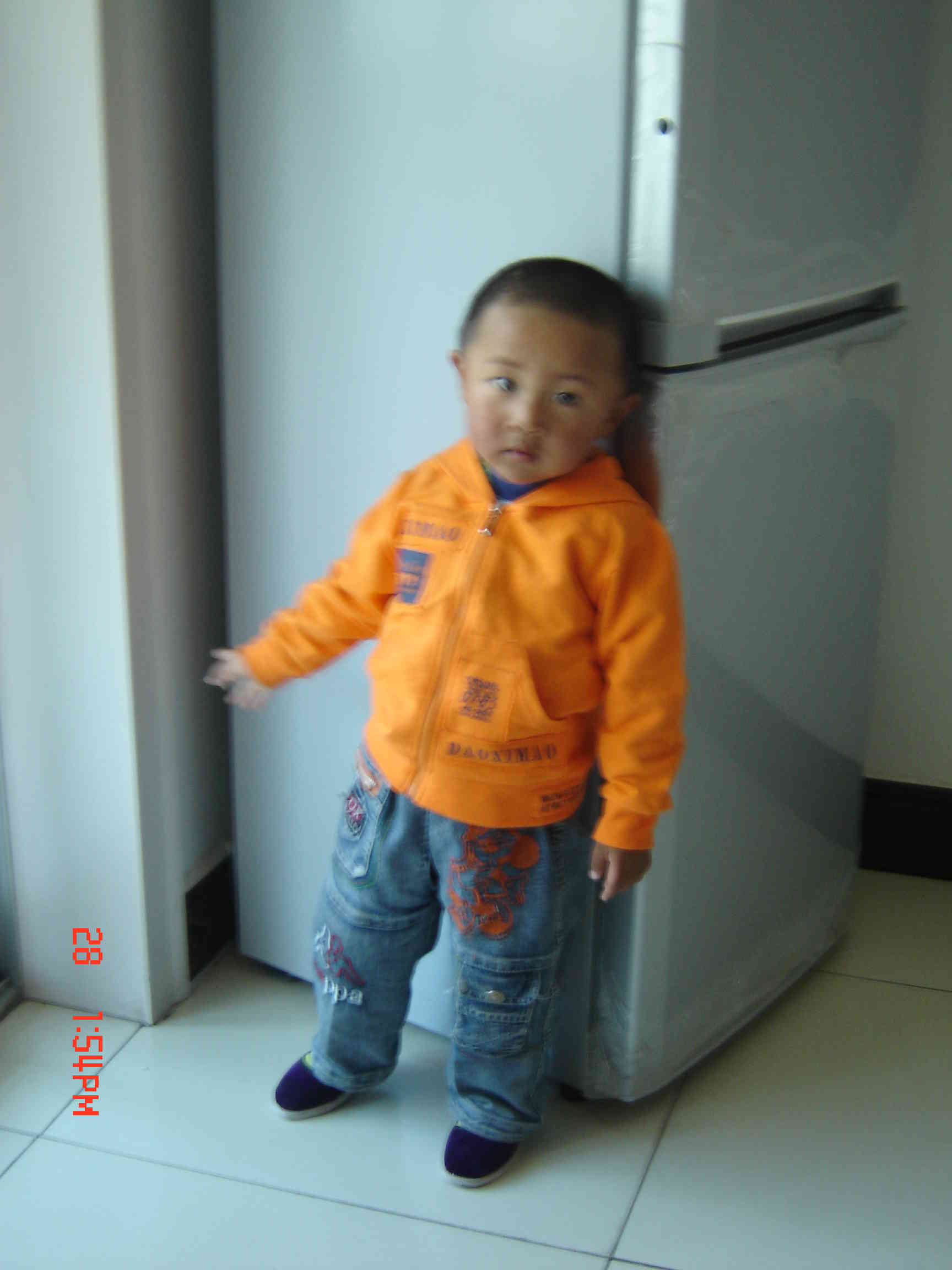 那时他还小,不会走路经常坐在学步车里,象滑冰健儿,一会儿滑到电视跟前,灵巧的小手会开电视了,瞧,打开电视他满脸的喜悦,小手指着电视“哎,哎”地叫喊着,意思告诉大家看电视。他特别喜爱用小手指抠东西,学步车上放些小东西,他就很专心的用小手指扣来扣去。不知心里想啥!
