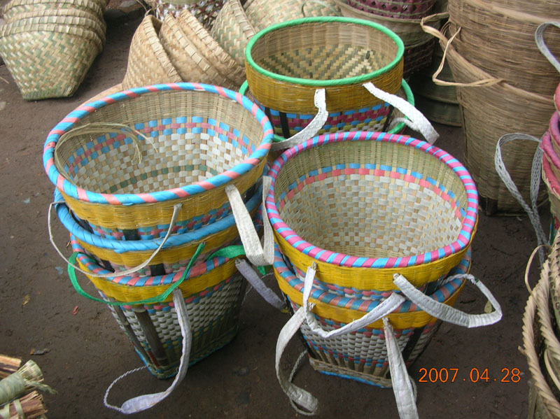 花背篓是不是很好看啊!它用的是五颜六色的编织带制成的。花背篓一般不用来背一些很重的东西,那些个赶集的人会用它来背买来的货物。背它,在咱们这里会很有面子的。