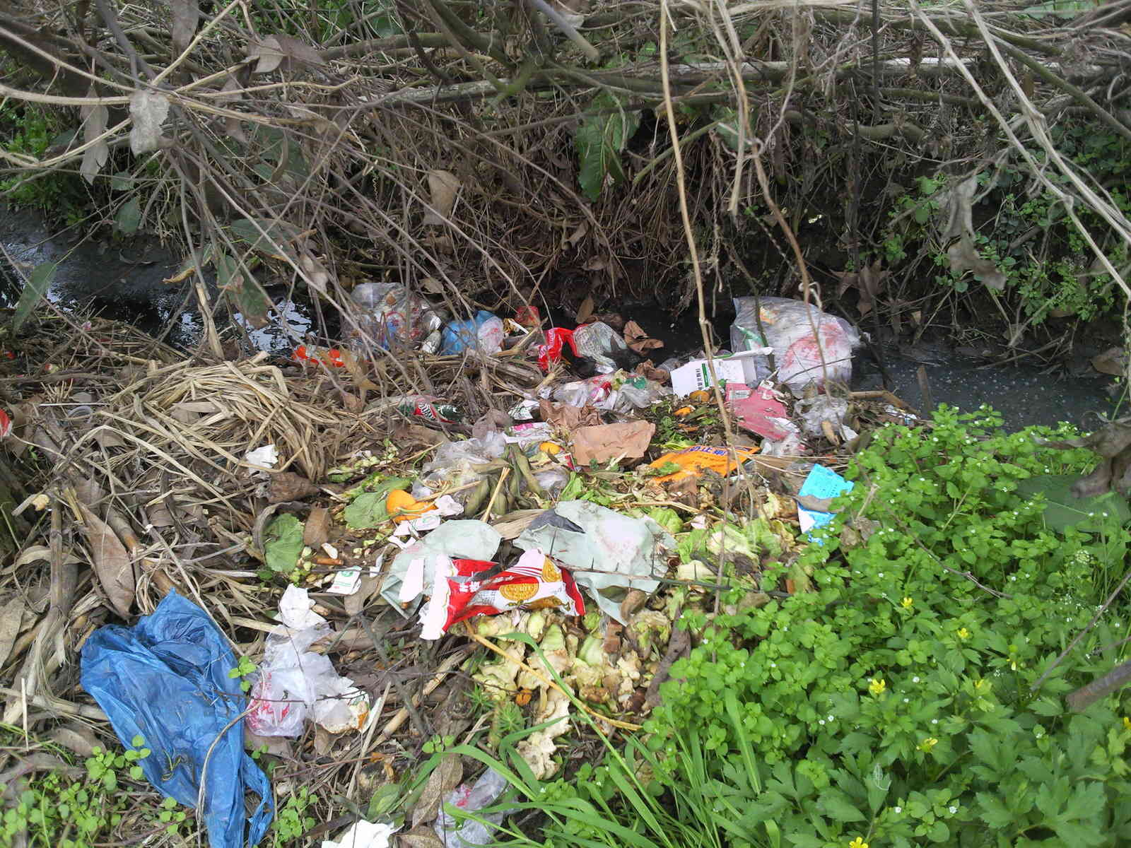 其次,农村随地乱扔、乱倒垃圾的现象没有丝毫改进,相反,随着生活水平的提高,各种塑料制品的广泛应用,这种恶习造成的环境问题越来越恐怖,塑料袋造成的白色污染更加剧了水质、土壤的恶化。我们这些天,在很多地方看到的不是清渠,而是状如墨汁的黑水沟。