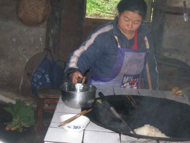今天又该是去上学的日子,母亲知道我吃午饭后就得走。于是离中午还很早,她就早早地为我准备午饭了。她坐在灶前,夹起一堆引火柴,往灶里塞,就算是点着灶火了,反复地向灶里添柴,保证灶里的火不能灭。