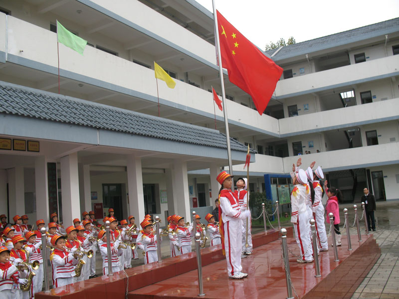 经过大家的努力,我校鼓号队具有一定的影响力,为此学校为了鼓励大家,让我们参加每周升旗仪式的演出。瞧,大家奏国歌,多有精神!
