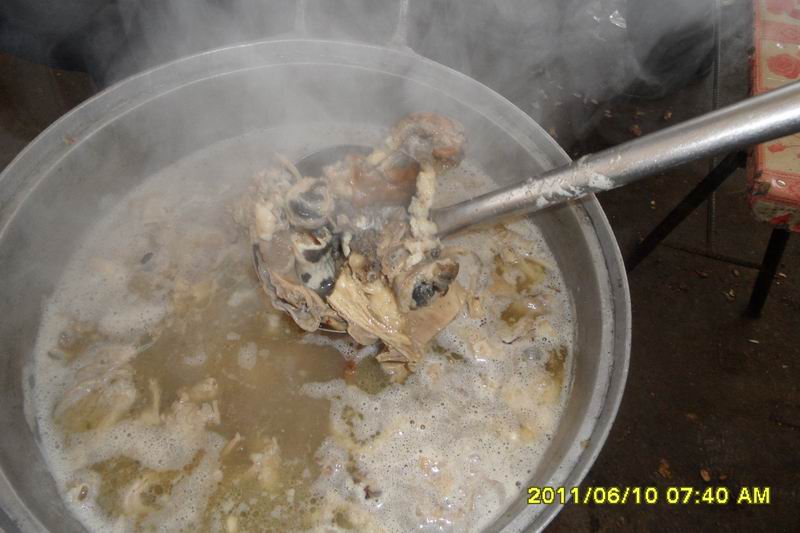 它是用煮熟的牛、羊的头、心肝、肺、肠、蹄等切片、切成条,配上浓郁的羊肉汤,加点调料,把切成德牛羊杂碎放到汤里煮,即成的一种简单的早餐。