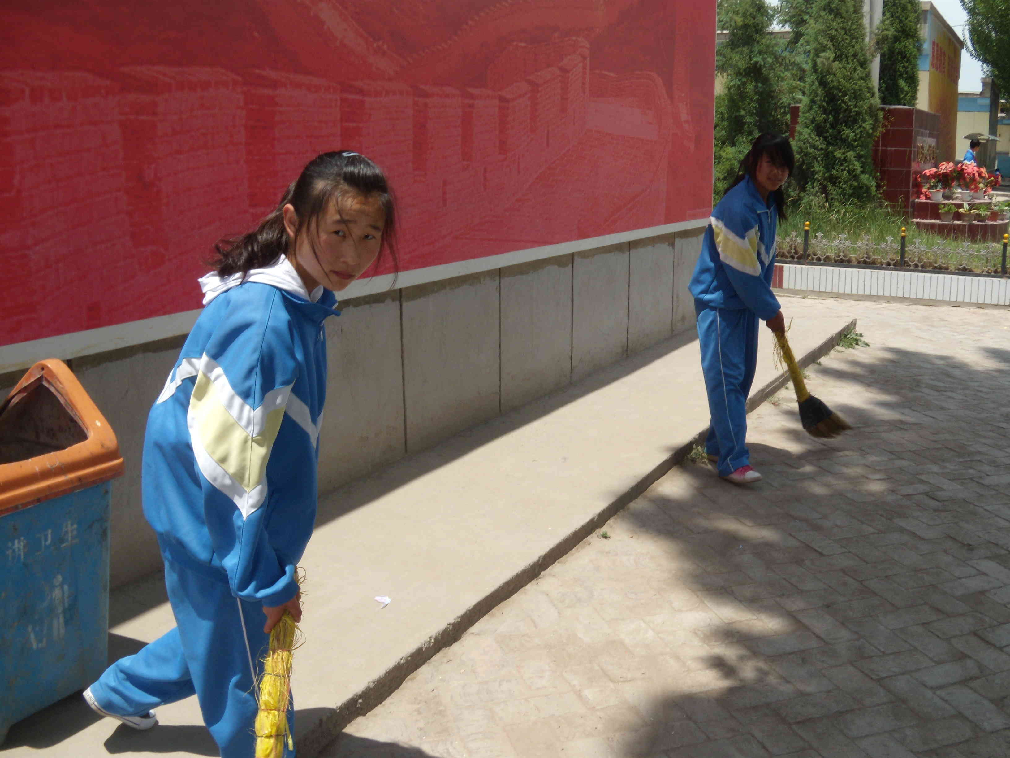 下雪天的早晨,我总看到一个瘦弱的女孩正在慢慢的扫着雪,那就是我们班长。那么瘦小的身体怎能耐得住严寒呢?班长在雪中扫出一条窄窄的小道,以便同学们行走。即使手冻得通红,她也从不说一声,只是默默的扫地,不为同学老师的赞扬,只为心的安宁和幸福。