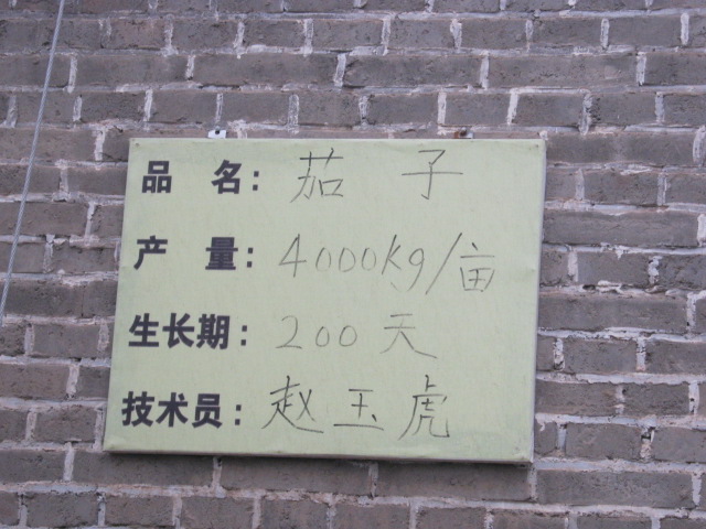 里面的温室要比我们农村自己盖的那种温室高很多,里面种了西瓜、黄瓜、丝瓜、葡萄还有油桃和樱桃西红柿。每一个温室的外墙上都挂着一个小牌子,上面写着技术员的名字,还有产量以及采摘期等信息。