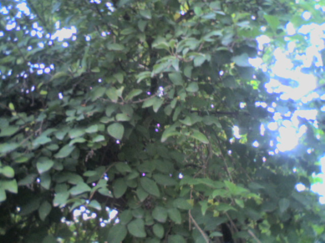 我把目光投在一棵大树上,几根粗大的枝干上分布着许多小枝条,阳光透过枝间的缝隙照在对面的墙上。正在这时,不知从哪儿飞来一只小鸟,落在一根枝条上,不止一只,还有一只藏在下面的树枝中,很难发现。