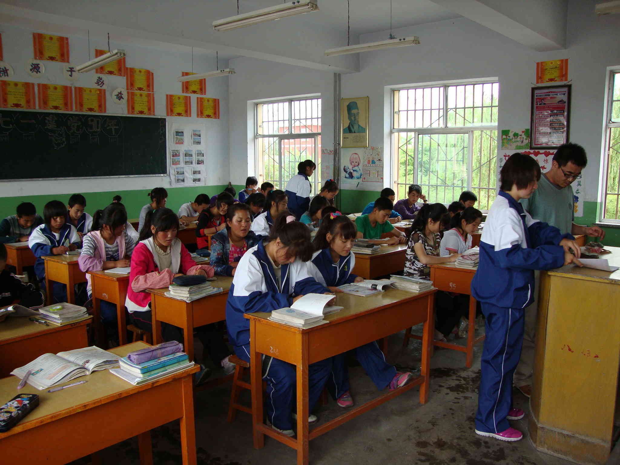 上课了,你情绪好了,就会大吼着:“老师好!”震得回中的教学楼都嗡嗡直响,女生会用很无奈的眼神朝你望去,你脸上却露出了得意的笑容。但你精神不佳时呢,甚至站都不愿往起站,还要前面的人帮你挡一下,唉,真是无奈······