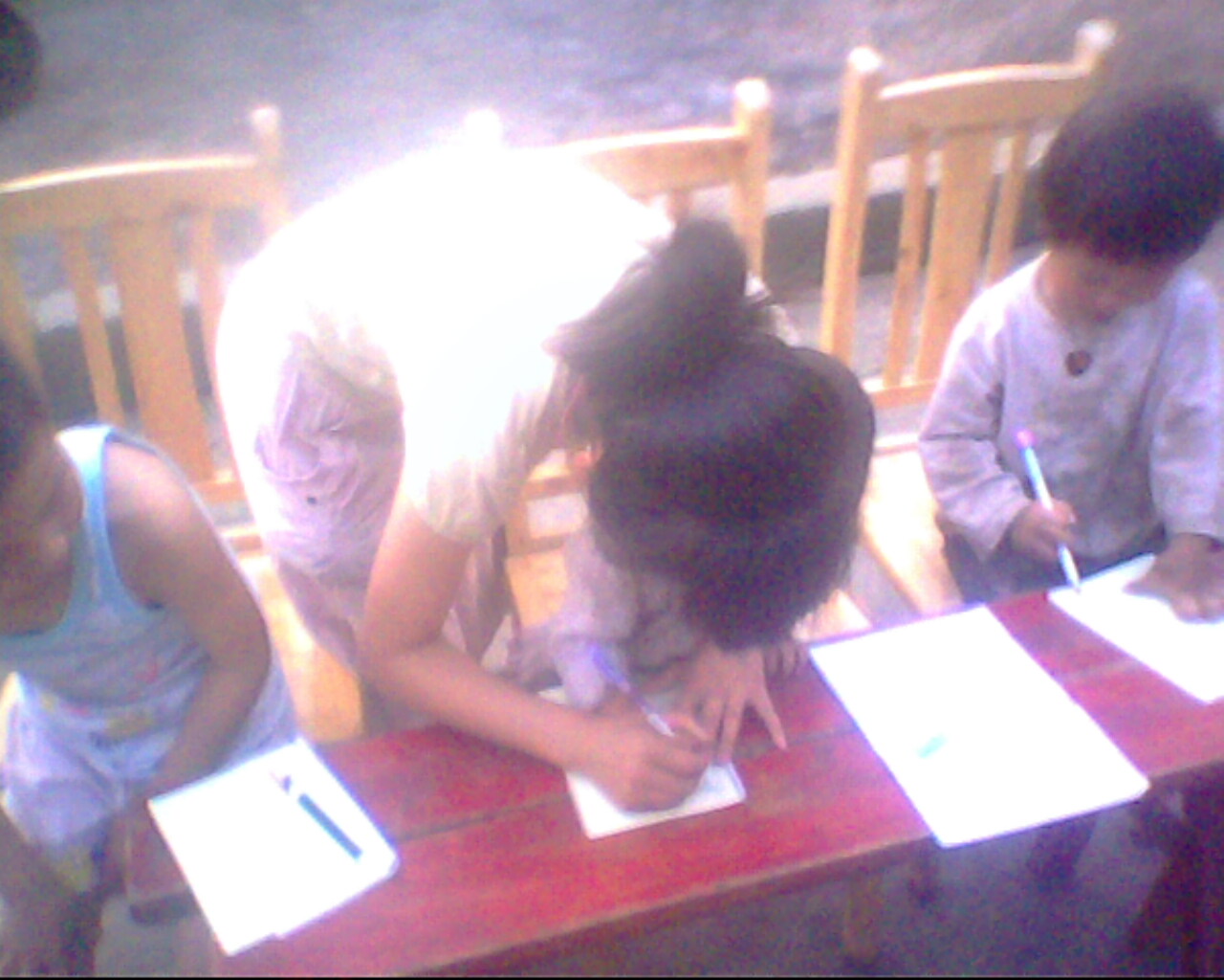 随后,我又教了他们唱歌,画画,同样的结果,有的学得还行,而有的就不理想境界了,有时真让人哭笑不得…….