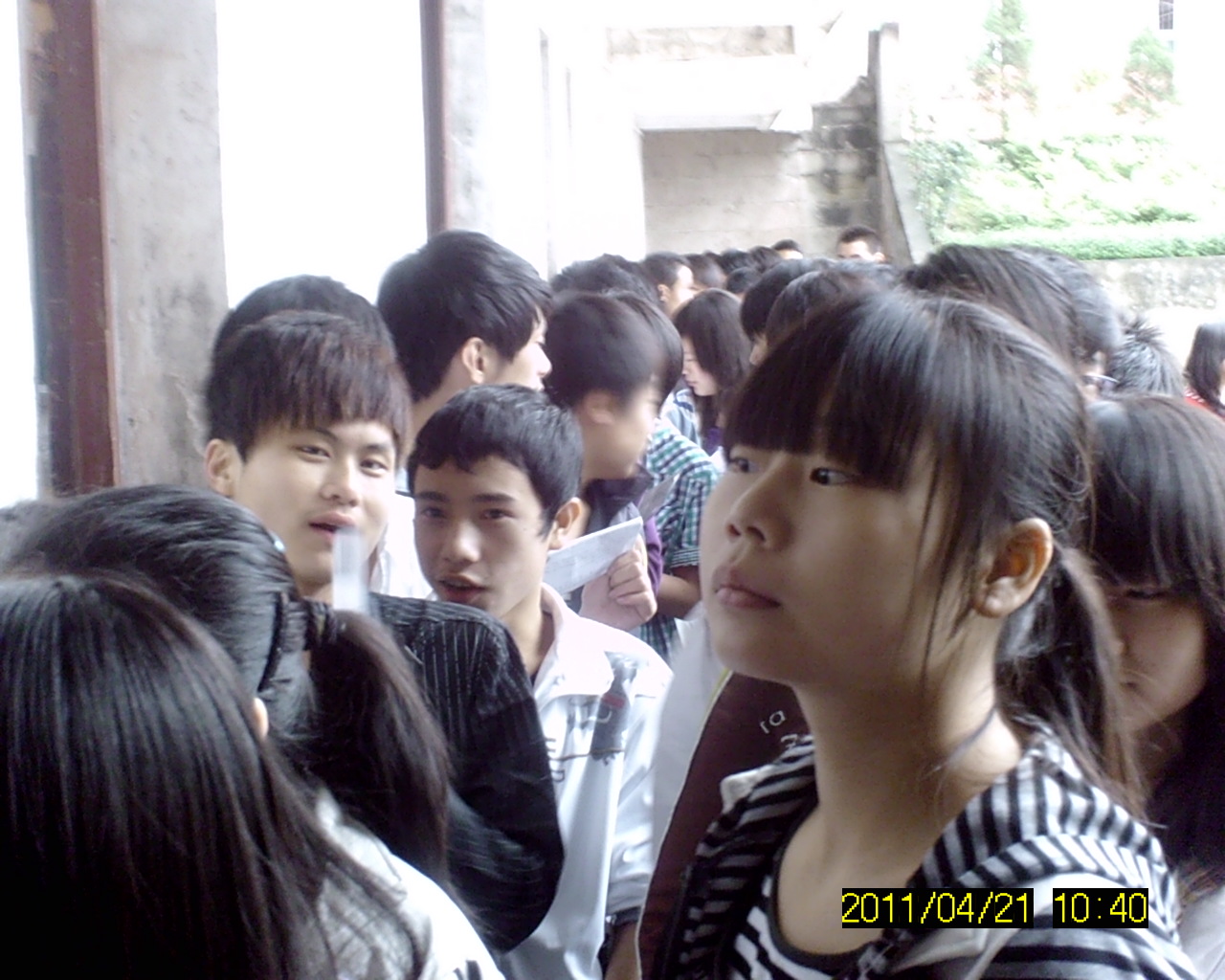 我校政策,在高二下学期,对理科知识进行结业考试,现在是在教室门外等待实验考试的同学,焦急的眼神中有点儿迫不及待。