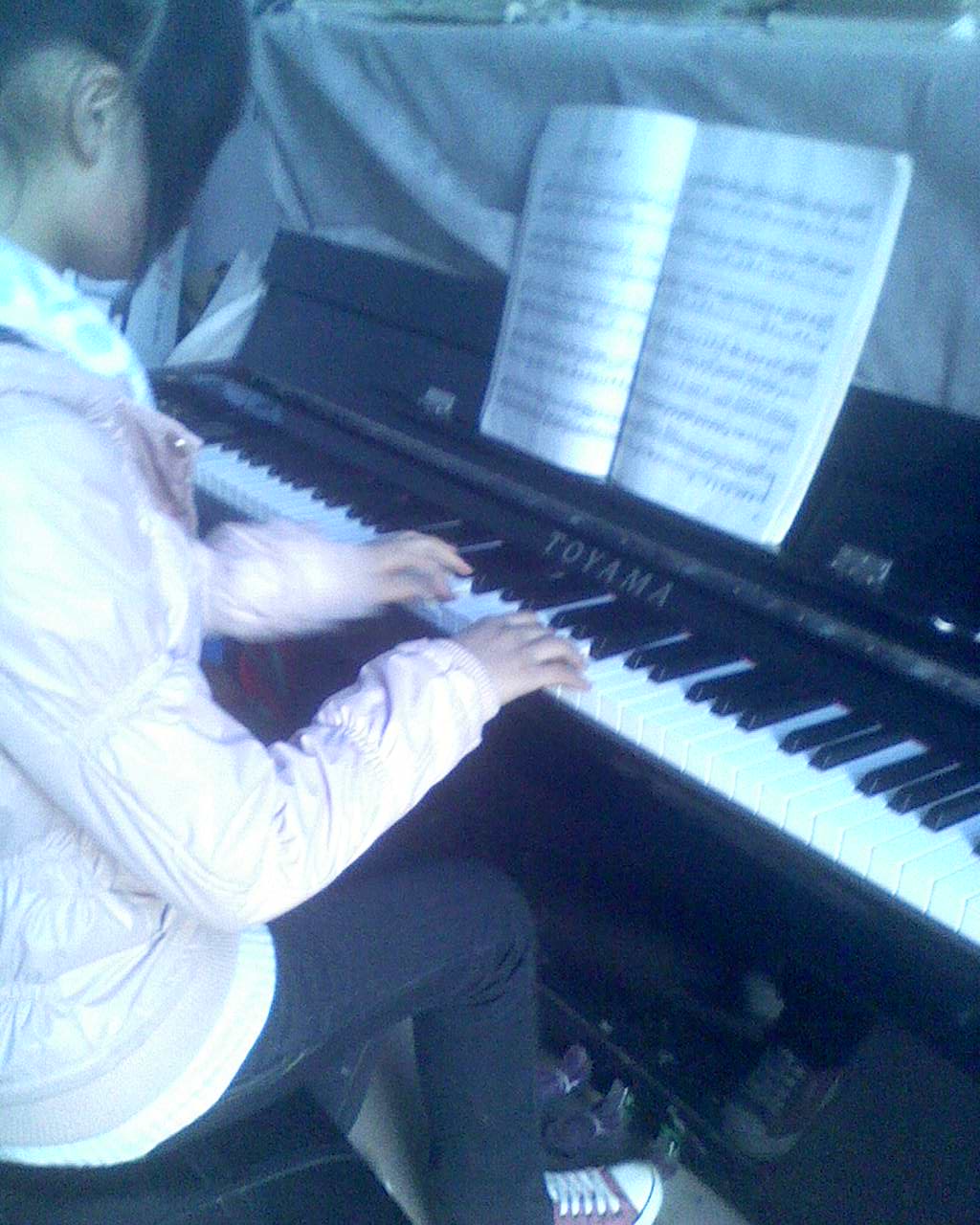 天知道她每天是多么的辛苦,她每天都在学校和音乐室之间奔波。但是她从来都没说过一次苦,反而把这当成一种乐趣,努力的融入这一切。她才开始学习钢琴的时候,手指从来都没有消过肿,有时候吃饭的时候拿筷子都会痛。然而她觉得这一切都是值得的,