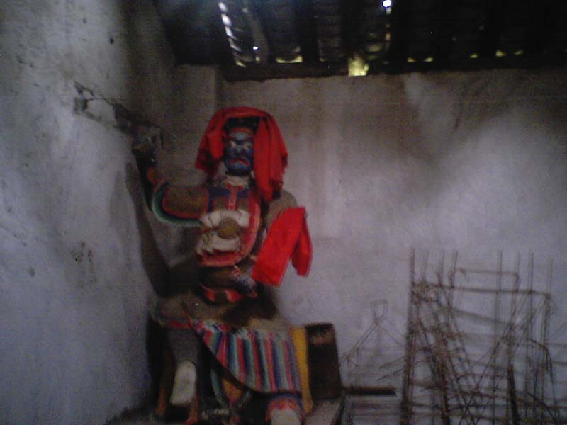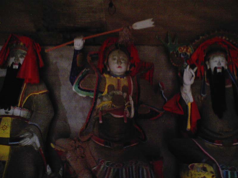 刚进入第二道门就可以看到,几尊拿着神器的神像,它们大约有二三米高,身上有的色彩有些还清晰可见。