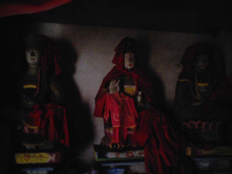 往右走一些,就是几尊观音菩萨。她们每个都是手拿红绸,比起当中那几尊神像,她们稍稍要矮一点。