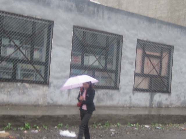 天阴沉沉的,乌云密布,不一会儿,电闪雷鸣,下起了滂沱大雨。窗外的雨沿着屋檐飞流而下,如同阴帘又好像是薄薄的瀑布。