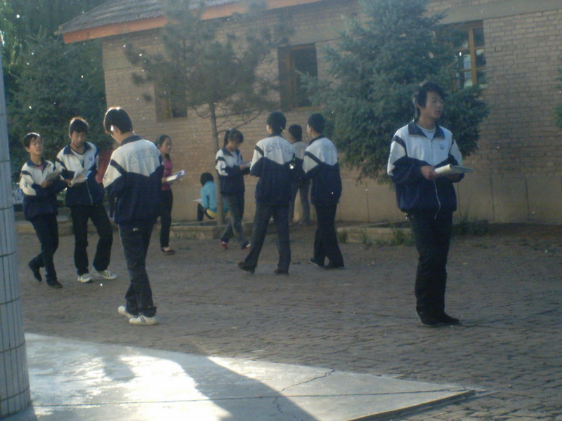 每天清晨,同学们起床都很早,迅速收拾完内勤。用很短的时间吃完早餐。同学们就开始了晨读,他们呼吸着新鲜的空气,精神饱满地诵读着。学校操场上、小广场上、树荫下,教室里、平房教室前的空地上,都有同学们的身影。朗朗的读书声、可谓是“声声入耳”。同学们的脸上充满了被知识沐浴着的喜悦。他们给美丽的校园又增添了一片生机。
