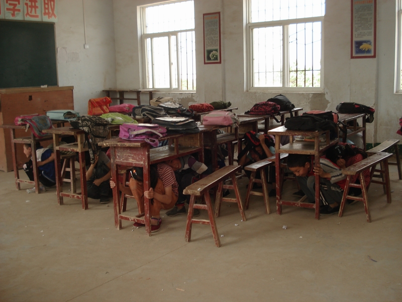 在教室里,我们郭老师又一次进行了安全强调,同时给我们同学进行了分组,刚安排完毕,警报声响了,我们的防震演练就正式开始了。我们就快速地躲到桌子下面,过了大概一分钟时间,第二声警报就响了,我们就有秩序、迅速地跑向操场,几十秒钟,我们全部同学都撤到了安全地带。