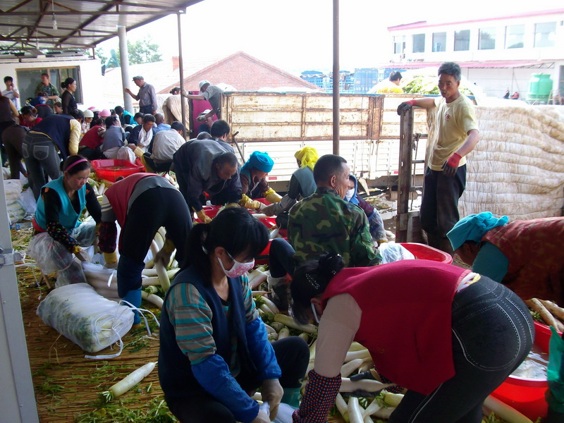 夏季七月清晨的北方确实有些凉,我孤零零走在这个既熟悉又陌生的村镇的街头,茫然若失,隐隐的感觉到这个小镇暗暗袭来的压力。蔬菜给这里带来了诱惑、繁荣、欲望。熟悉的面孔大都略显疲惫或心事重重,陌生的面孔是四面八方的菜商,只有我是莫名其妙的来,稀里糊涂的匆匆过客。