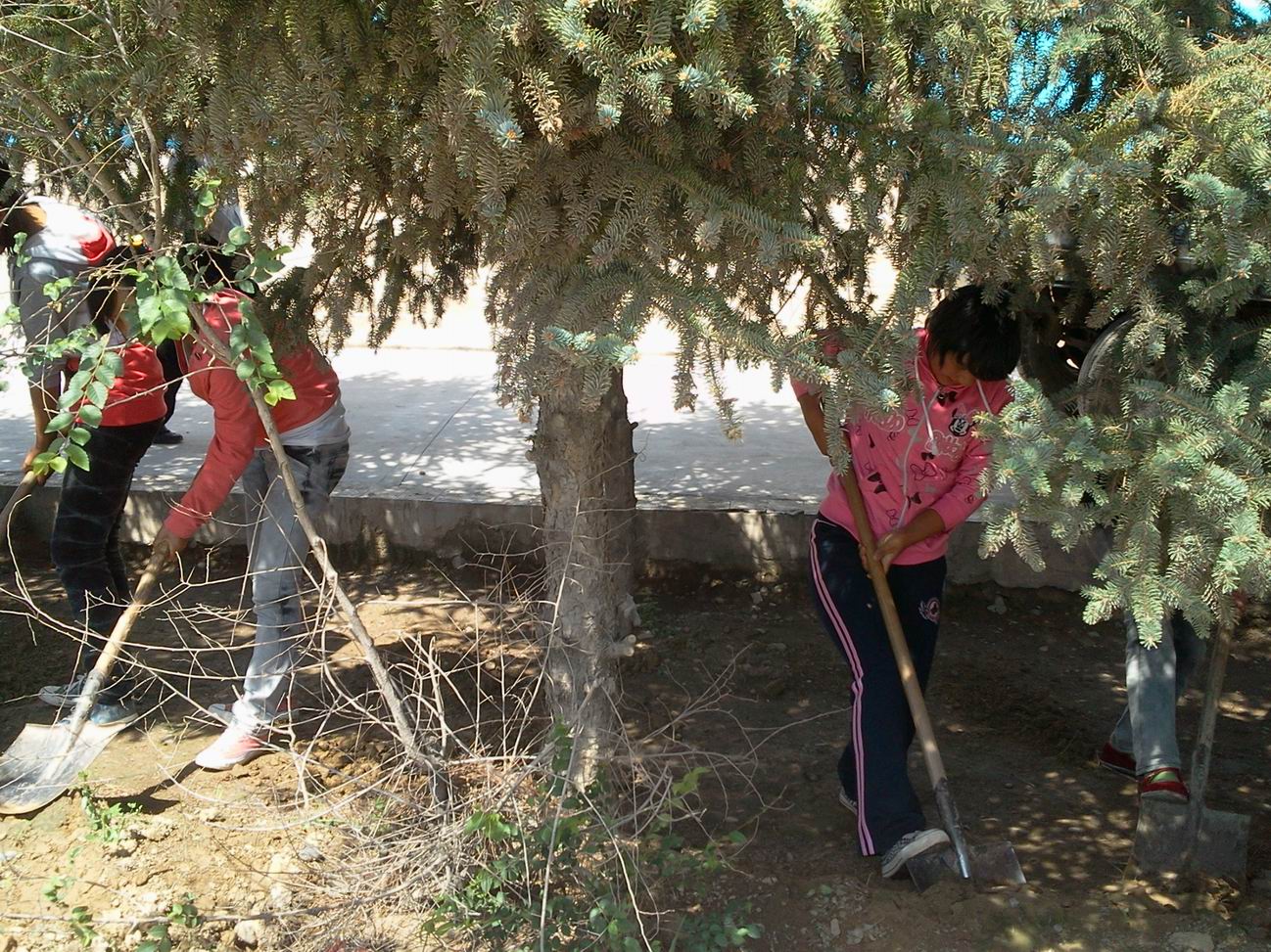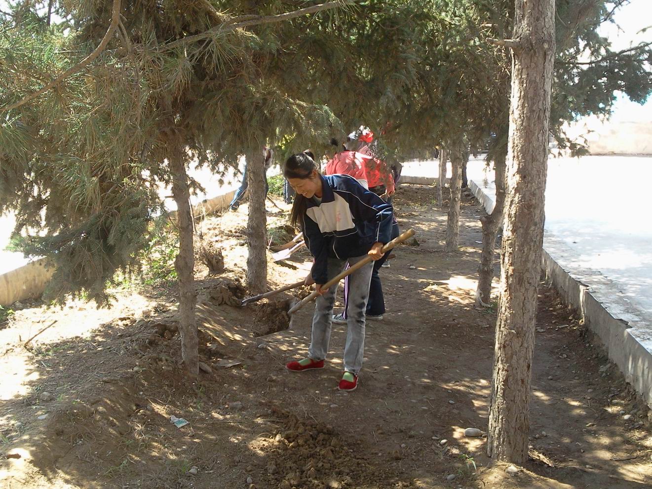 大家一个个都很卖力,无论是男生还是女生都干得热火朝天,我们大家都希望能把我们的学校收拾的漂漂亮亮的。