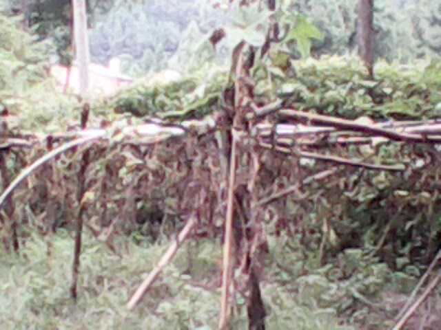这本来是我们家的瓜架。以前架上是翠绿的一片,在洪水过后已经失去了它的翠绿,也让我们的菜碗里的蔬菜少了一半,对于农村的我们来说,总让我们感觉不舒服。