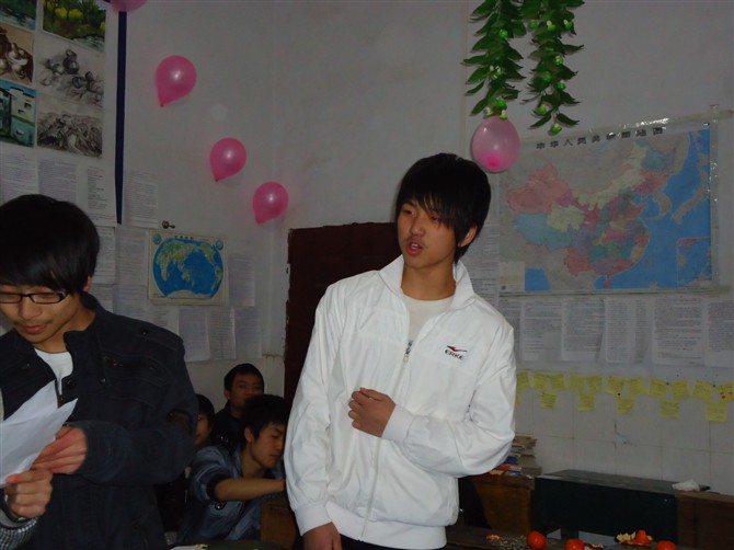唉,可怜的地理老师啊,今晚你还真的是“狼狈”啊。不过,看你的表情却是意犹未尽啊。好吧。慢慢享受同学们的热情吧。呵呵。