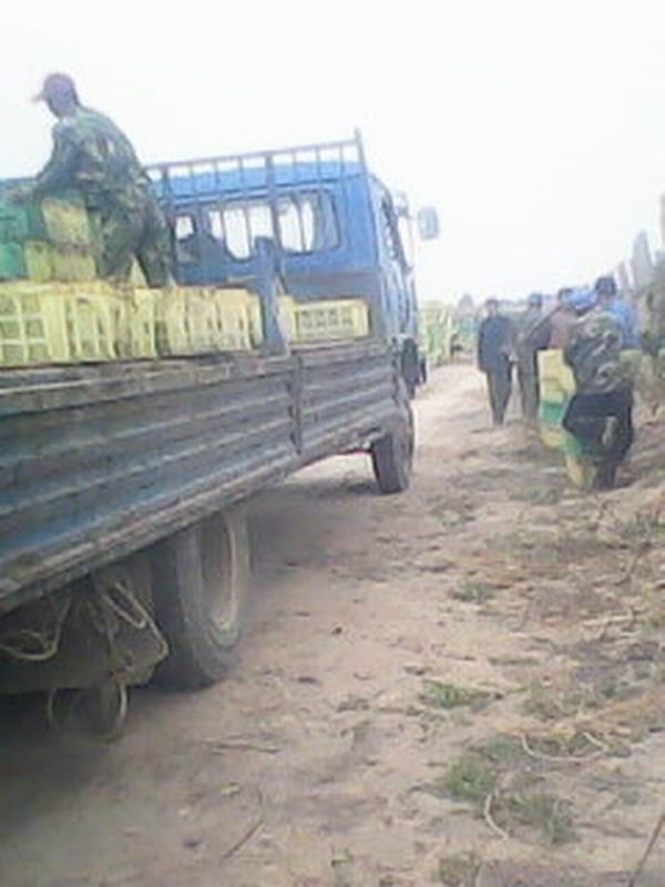 和往常一样——集体大行动。全队的人集中在一起,根据不同品种含糖量的高低,事先安排好采摘的先后顺序,然后指定的汽车会把空葡萄筐运送到要采摘的地里,人们就三三两两组合成采摘小组,拿着空筐去葡萄沟里采摘葡萄了。你看那一串又一串的葡萄被装满了一筐又一筐,又被人们一筐筐的用扁担挑出来。来来往往、熙熙攘攘,多么热闹的劳动场面啊!等一份地(10亩)的萄萄采摘完后,地头边的葡萄筐摆得密密麻麻的,这时,这份地的主人便以每筐2.5元的价格付给采农们采摘费。然后,队上再派几个身强力壮的男子和空汽车来到地头边,他们有的人称重量,有的人往汽车里装筐。就这样,进行着金秋十月的丰收曲﹗