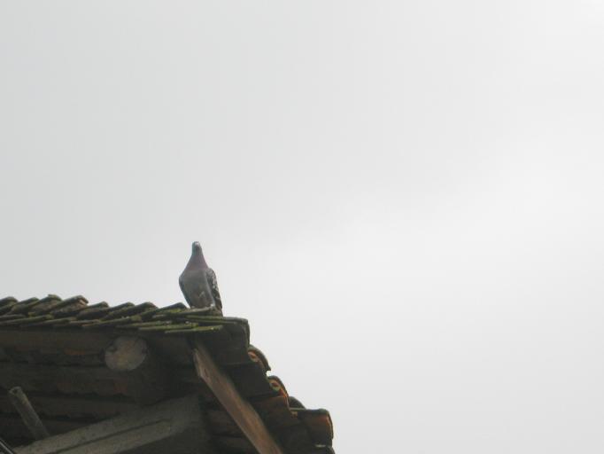 鸽子的头上总有一束毛翘起来,那薄膜似的眼皮常常迅速垂下来,有快速拉上去,不停地眨着。那一对小眼睛像红灯笼似的,我想它可能是经常熬夜吧。