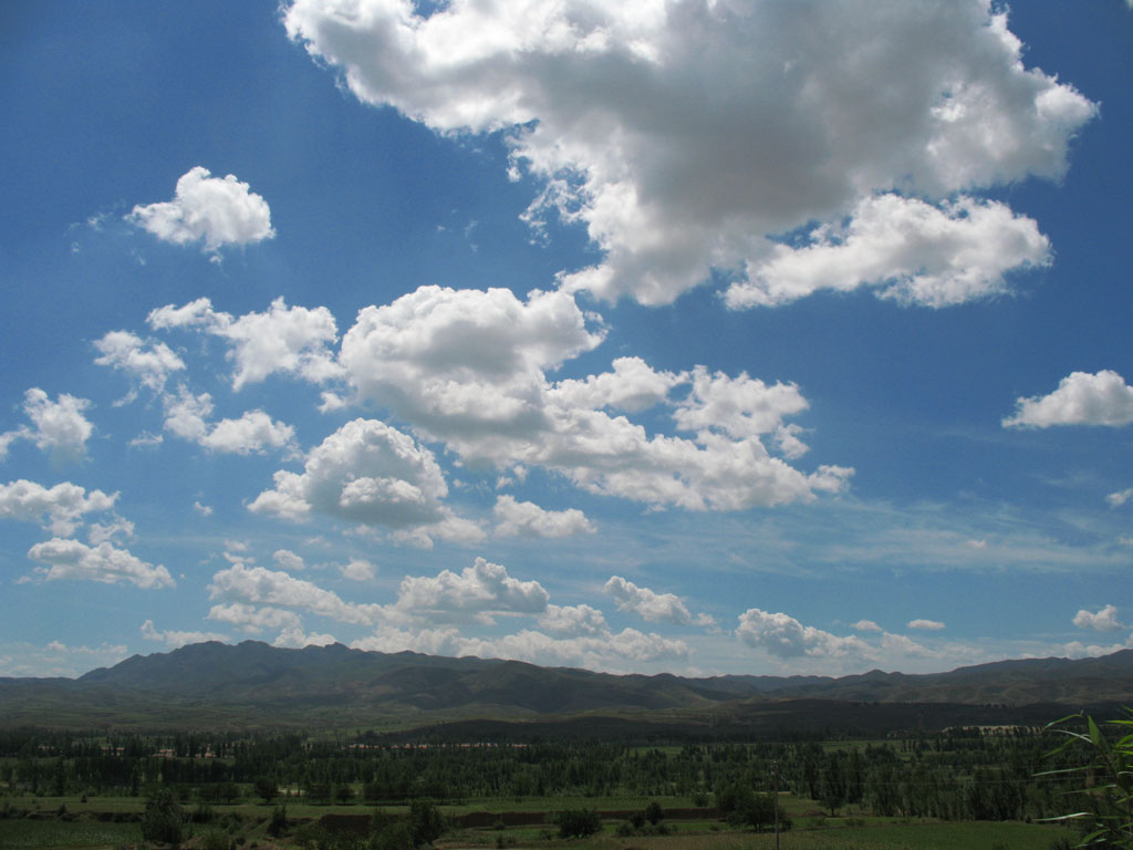 天空中,一块块云朵在远处、近处飘浮,如果站得高,便不需要抬头仰视,只需要平视,这完美的一切便会映入眼帘。云,淡淡的、轻轻的、柔柔的,散在天空中非常柔媚。每次看着它,总会有种如梦似幻的感觉,陷落于无忧的境界。