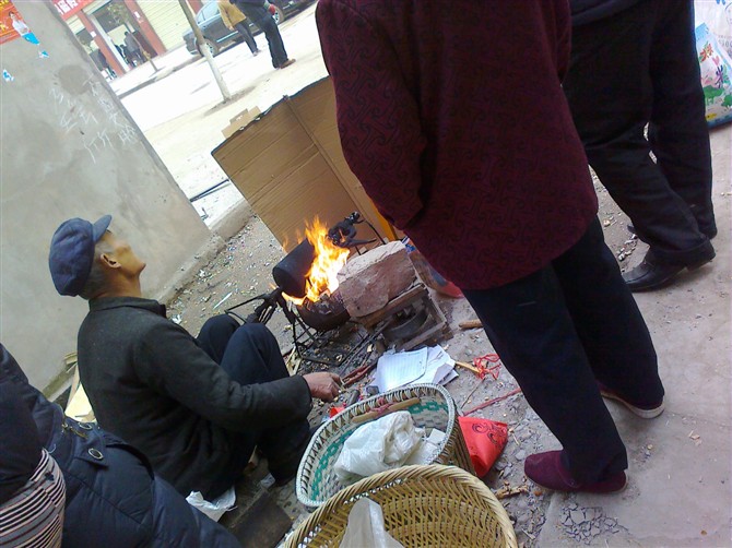我问老爷爷为什么都那么大年纪了,不在家享福,还出来打爆米花。他说:"我现在还有精神,而且像我这样炒爆米花的基本都没有了,我想让人们记住这个我祖辈们传下来的方法。也让大家过年的时候多点好吃的。"