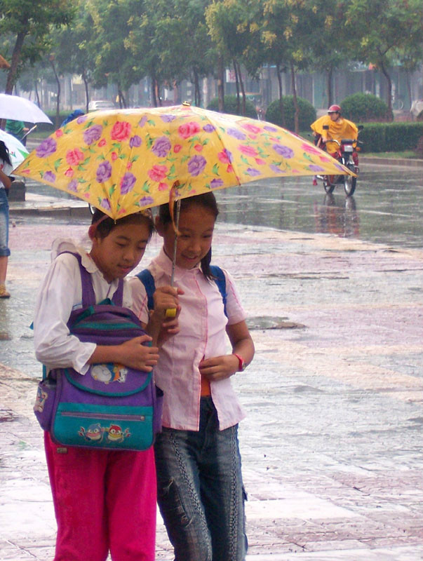 在雨中,可以怀忆古人,许仙、白娘子因雨结缘,留下那凄美的动人故事;在雨中,也可以和知心好友共撑一把伞,然后漫话古今,紧紧依靠,伞外的世界,迷蒙的一片,伞内的世界却温馨惬意,这是何等的享受啊!