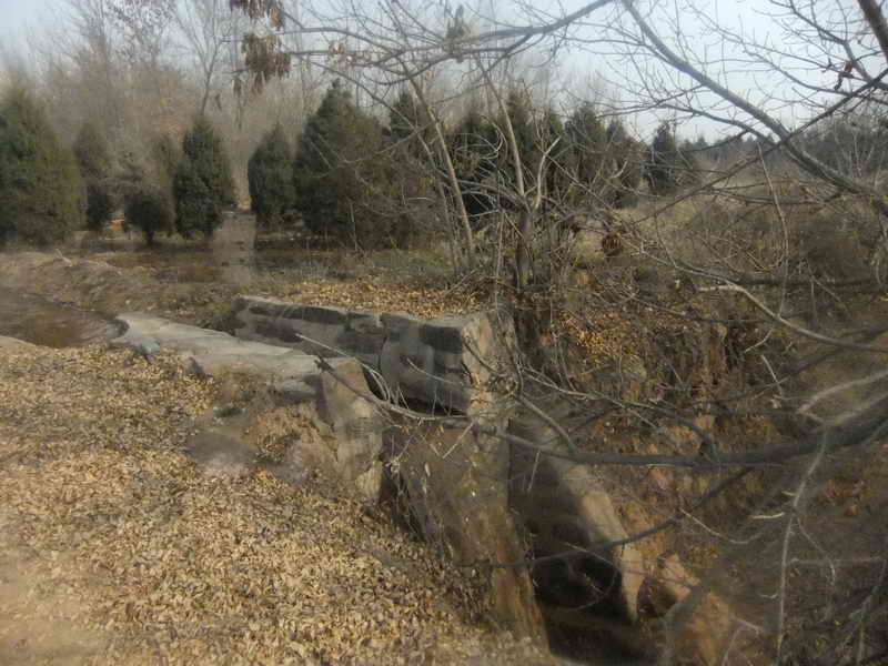 浑浊的流水,无声无息的在树林间流淌。没有了夏日的清冽,也没有水落而是出的意境。流水从高处落下,俨然一个小瀑布,虽然没有声势浩大的场面,却也有不可小觑的景观。这就是苗圃,曾留下我们欢笑的地方。