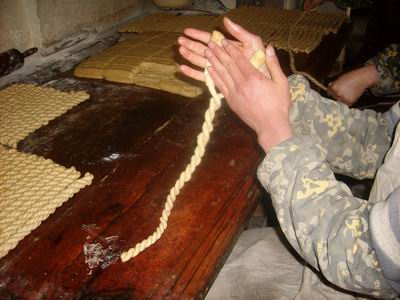 可不是吗!一进店铺,一阵麻花的香味迎面扑来,又一看,那人人口头传说的麻花张,坐在店门口,一边搓麻花,一边乐呵呵的与几个人聊天,很开心的样子,他的两只手一会在面板上搓了几下,就成了一条金黄的面根儿,让他再一拉变得又细又长,接着折回来就面了两条了,还不时的拿起来在面板上甩,可那被搓细的面像细绳一样就是不断,再把两根缠绕在一起,又接着搓和甩,再均匀的分成三段折回来,那面就自动绕在一起成了一根漂亮的麻花了。那熟练程度,真是没的说,可以说是手怀绝技,我感觉到这屋里特别的热,更使我不由得佩服起他来了。