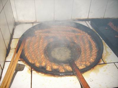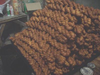 这时,一个女人把一盆刚炸好的麻花端了出来,我一看,呵,外皮红紫色的,一看就勾起人的食欲。看着妈妈买麻花,我就忍不住只吞口水。