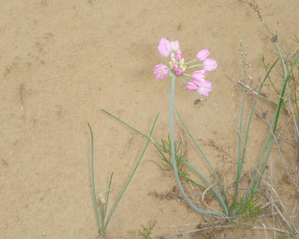享受了大自然的神韵后,继续往西走,又来到了大沙漠面前,我被眼前的景象惊呆了,沙漠中,到处开着紫色的沙葱花,漂亮极了,我扔下手中的篮子,开始采摘沙葱花,不一会就摘了一大把。其他小伙伴也兴奋的在那里高兴的蹦着跳着,摘着,欢呼着,跳跃着,我四脚朝天躺着在这花簇中,看着碧蓝的天空,我的心飞翔了……,忘记挖沙葱了。
